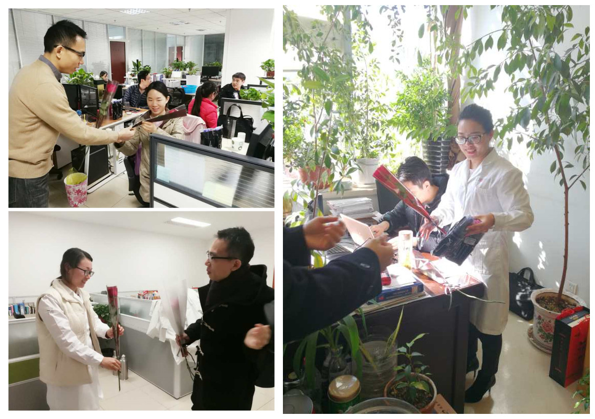 今天一大早,人力資源部門就準(zhǔn)備好了節(jié)日的禮物,杭州總部、北京中心、青島中心的好絡(luò)維男團(tuán)們也早早準(zhǔn)備好了向好絡(luò)維女神們 “表白”,為此還引起了一陣小小的騷動。原來,公司女神數(shù)量有限,男團(tuán)成員太多,眾好漢經(jīng)過商議決定采取“抓鬮”選取幸運(yùn)者,抽到者喜氣洋洋,一朵鮮花、一份禮物,一句祝福,暖的工作中雷厲風(fēng)行的“女漢子”們個個嬌羞柔媚,喜笑顏開。