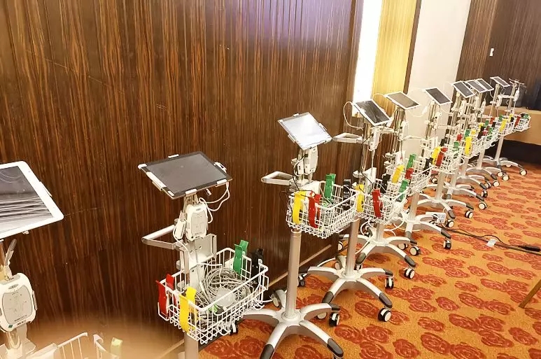 9月27日,好絡(luò)維保障小組全體成員,攜帶公司60套TE-8000Y-F無線網(wǎng)絡(luò)生理參數(shù)監(jiān)測儀、20套TE-8000Y無線網(wǎng)絡(luò)生理參數(shù)監(jiān)測儀、25套TE-9000Y十二導(dǎo)聯(lián)網(wǎng)絡(luò)心電圖機、120套TE-5100Y-C動態(tài)心電記錄儀,120套TE-5200Y-A腕帶式心電記錄儀入駐好苑建國酒店及北京國際飯店,現(xiàn)場搭建“生命衛(wèi)士”遠程監(jiān)測平臺,并完成所有設(shè)備及系統(tǒng)的安裝調(diào)試,確保保障工作順利開展。