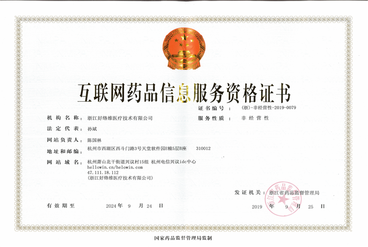 互聯(lián)網(wǎng)藥品信息服務(wù)資格證書[(浙)-非經(jīng)營(yíng)性-2019-0079]