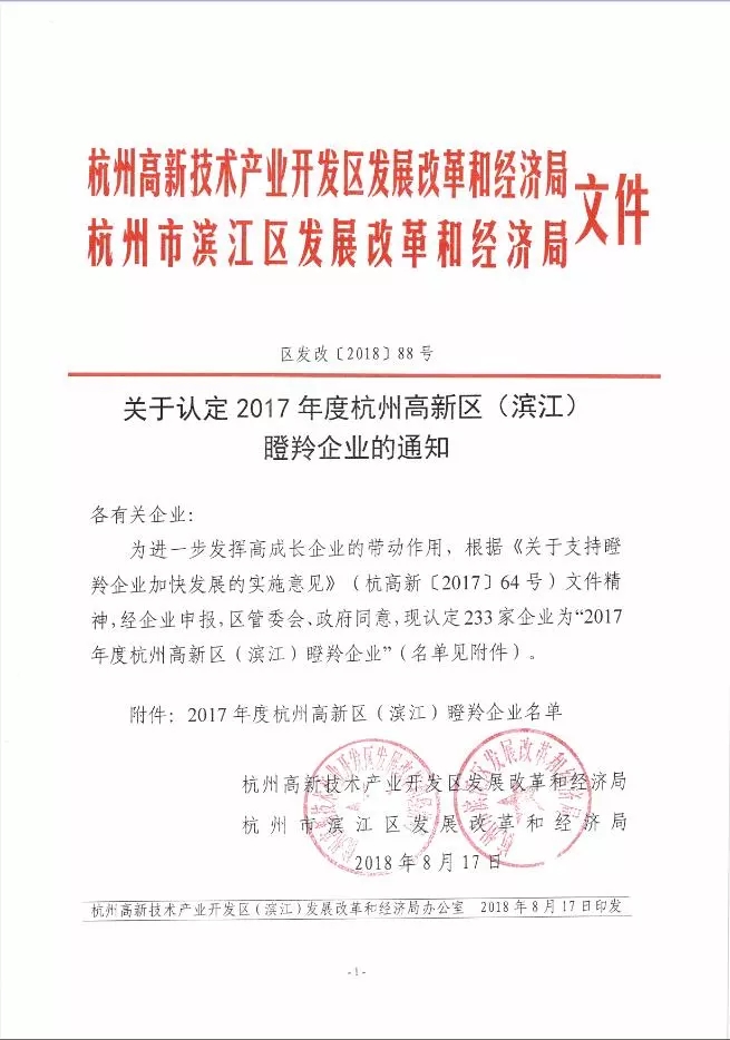 2018年8月從濱江發(fā)布及區(qū)發(fā)改局得到消息,2017年高新區(qū)(濱江)瞪羚企業(yè)名單公布,此次高新區(qū)(濱江)通過認定的企業(yè)共233家。不出所料,好絡維上榜瞪羚企業(yè)名單這也是好絡維連續(xù)四年(2014年、2015年、2016年、2017年)榮獲高新區(qū)(濱江)瞪羚企業(yè)。厲害了,我的好絡維!